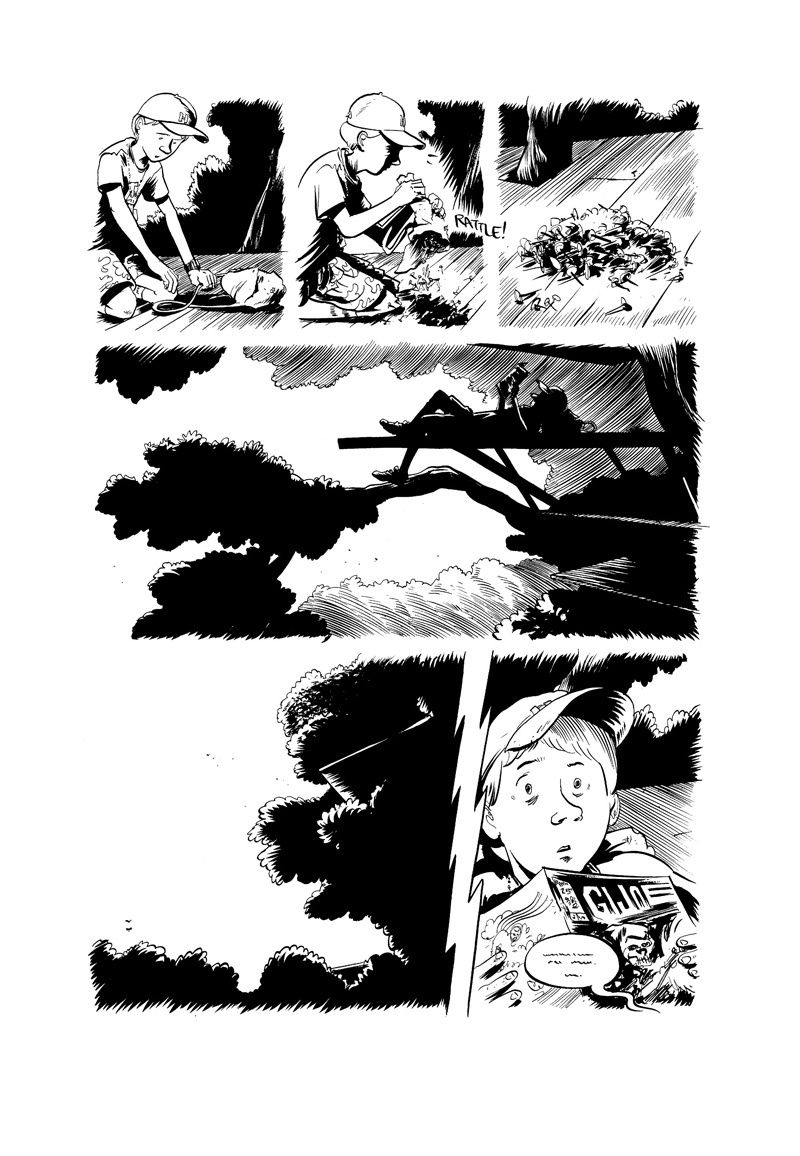 Du fantasme à la réalité et vice-versa, le scénario de cette fiction saute un peu partout dans le temps. Donnant ainsi cette impression de confusion, il faut juste en fait, prendre la séquence des événements à leur valeur nominale. Autrement dit, c'est de réussir à entrevoir la division entre l'imaginaire et la certitude. Et de se dire qu'il n'est pas toujours très important de comprendre ce qui se passe vraiment... Pas simple me dirait-vous, mais la force de Nate Powell se trouve dans son graphisme. Il parvient à mêler avec brio séduction et tension. Il invente des zones d'inquiétude, presque de grande frayeur puis nous ramène à l'authenticité, en toute simplicité. L'auteur utilise pour cela des jeux d'ombres et de lumières dans un noir et blanc imposant. Sans cadre, le rythme de lecture est assez rapide, cela glisse entre les illustrations. Le dessin ou la situation est comme amenée avant que cela arrive. Les regards ne sont pas en reste, très important, ils donnent l'indication, témoignent de la peur, de la colère ou de l'anxiété.