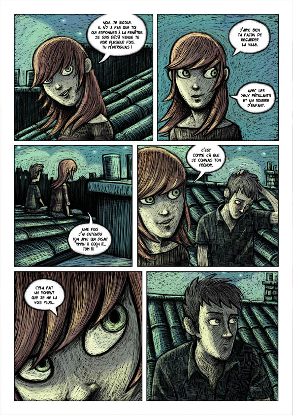 L'aventure peux commencer. Il y a quelques peurs à affronter mais Tom va faire de belles rencontres sur les toits de sa ville, à l'orée de l'aube. C'est toujours le risque quand on laisse aller son imagination. Le retour à la réalité est souvent brutal.